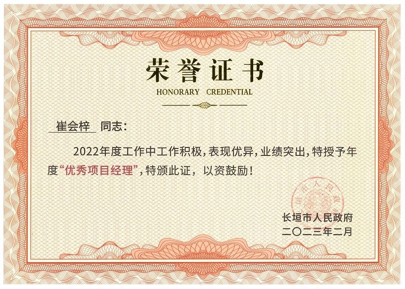 崔會(huì)梓、侯利平被授予“優(yōu)秀項(xiàng)目經(jīng)理”