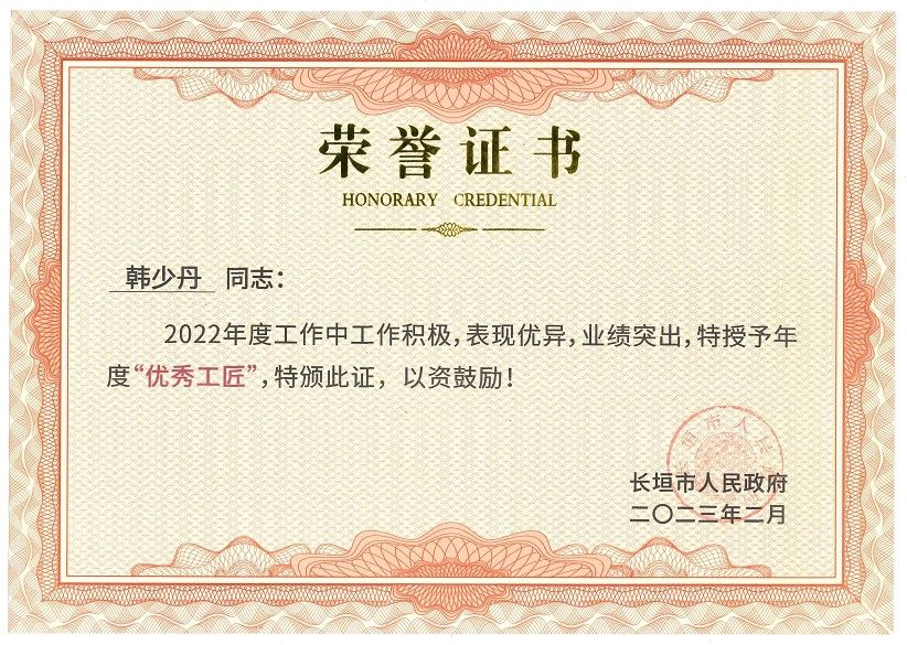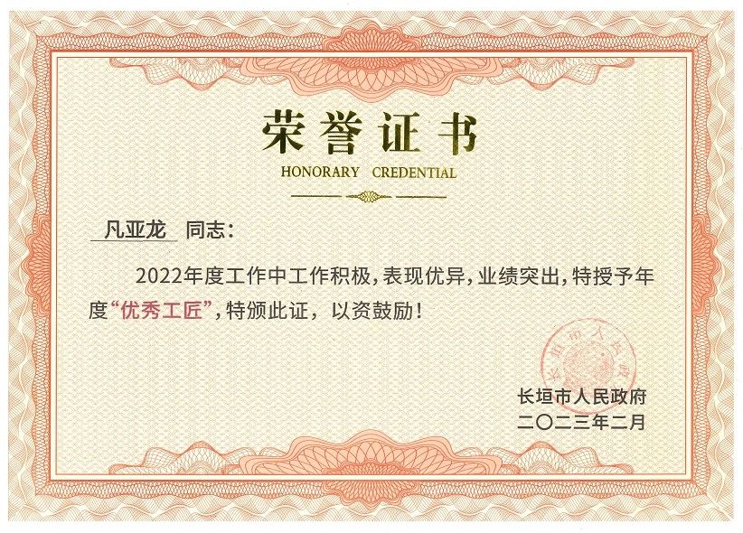 凡亞龍、韓少丹被授予“優(yōu)秀工匠”